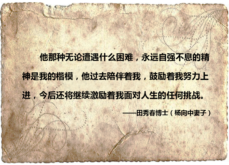 在2010年8月《南方周末》發表的一篇紀念楊向中的文章中,田秀春博士(楊向中夫人)回憶說:“他非常關心中國普通民眾的生存狀況,他幾乎每年都會寫幾本厚厚的建議書。”