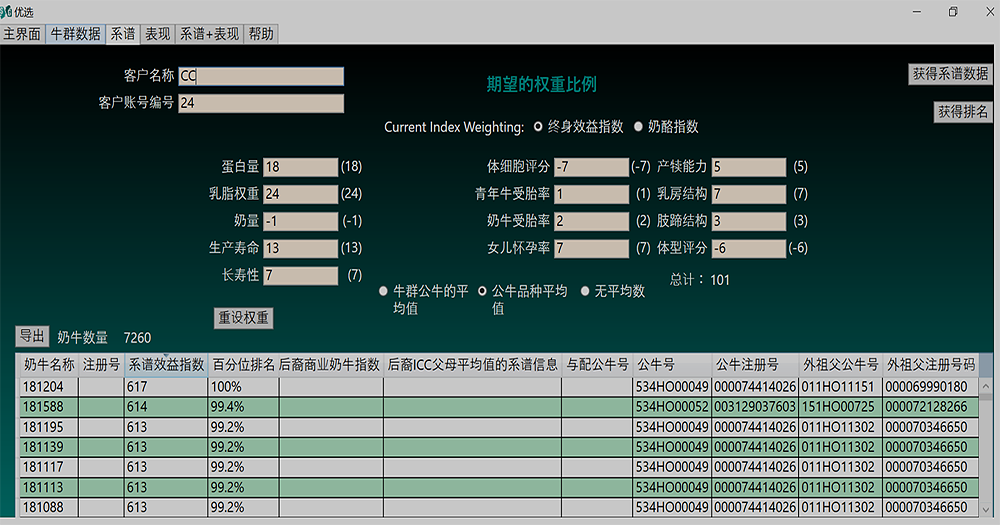 我們設計的優選軟件(Sort Gate)是一款更注重遺傳效益的荷斯坦奶牛評估軟件。