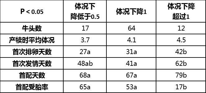 這項實驗被后續多個研究所證實,產犢時體況最高的奶牛(BCS4.5),它們在產犢5周內體況下降最快,首次發情和排卵時間延后,首配受胎率明顯下降,并且還表現出更多的胚胎早期死亡。所有的繁殖指標幾乎都能顯示出體況下降低的奶牛表現更好,例如,體況下降低于0.5的奶牛首配受胎率可達到65%,而下降達到1的奶牛是53%,超過1的僅有17%;并且體況下降幅度越大的奶牛產犢時平均體況越高。
